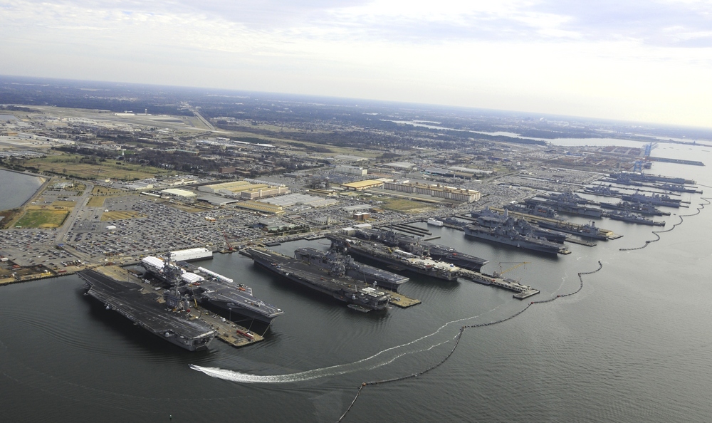 Крупнейшая военно-морская база ВМС США Норфолк. На этой фотографии, сделанной 20 декабря 2012 г., видны авианосцы Dwight D. Eisenhower (CVN-69), George H.W. Bush (CVN-77), Enterprise (CVN-65), Abraham Lincoln (CVN-72), Harry S. Truman (CVN-75), а также УДК и другие корабли Атлантического флота.