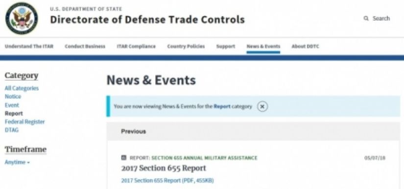 В документе приводятся данные о том, что в прошлом году сумма одобренных соглашений и поставок превысила показатели 2016 года на $ 1 млрд и достигла $ 51 млрд. Фактические же продажи снизились. В 2017 году американские компании поставили в различные страны вооружений на $ 3,092 млрд, тогда как годом ранее эта сумма составила $ 4,836 млрд.