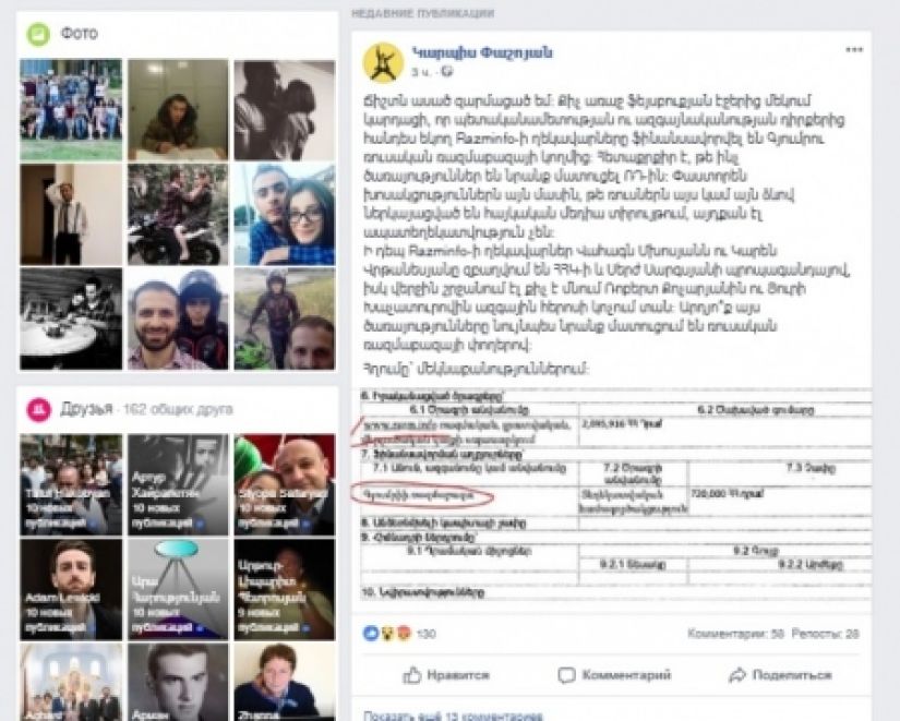 Особенно интересно то, что тиражированием указанной страницы и записи на ней занимаются: давний сотрудник фонда «Сороса» в Армении, недавно перешедший на работу в правительство Армении, Даниэл Ионисян (координирует процесс реформирования Избирательного кодекса в составе комиссии во главе с первым вице-премьером Армении Араратом Мирзояном) и бывший спикер Арарата Мирзояна, активный пропагандист прав ЛГБТ Карпис Пашоян, который недавно был освобожден от работы за недопустимые выражения в адрес армянских солдат, погибших во время апрельской «четырехдневной войны» в Нагорном Карабахе.