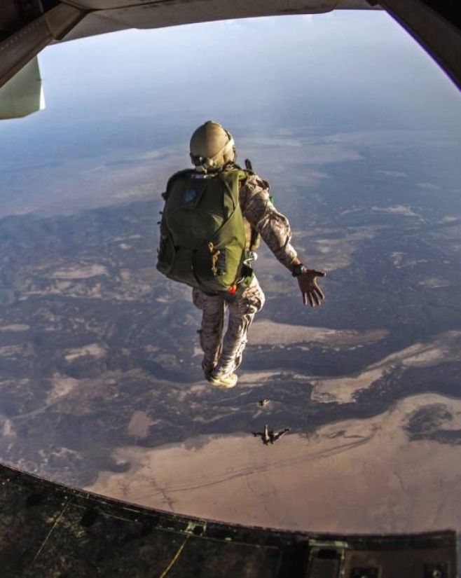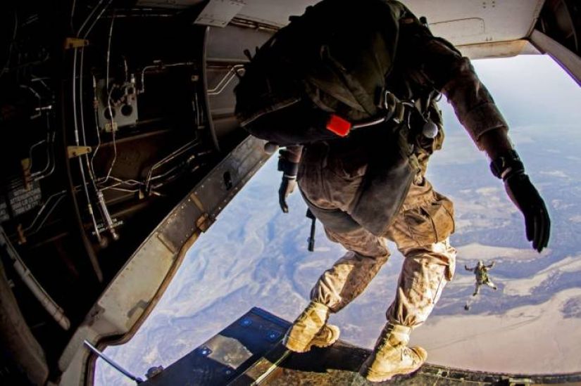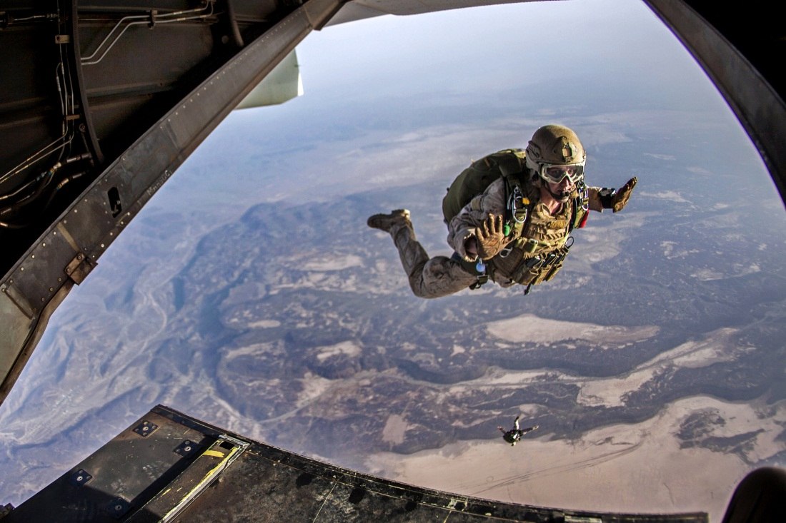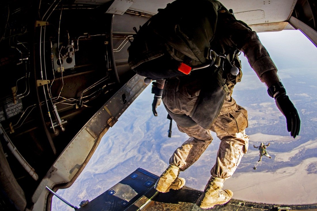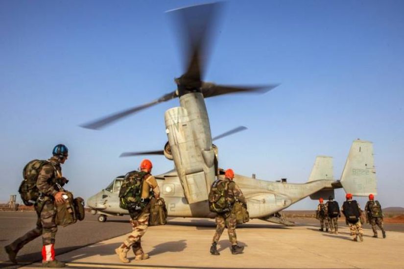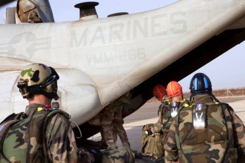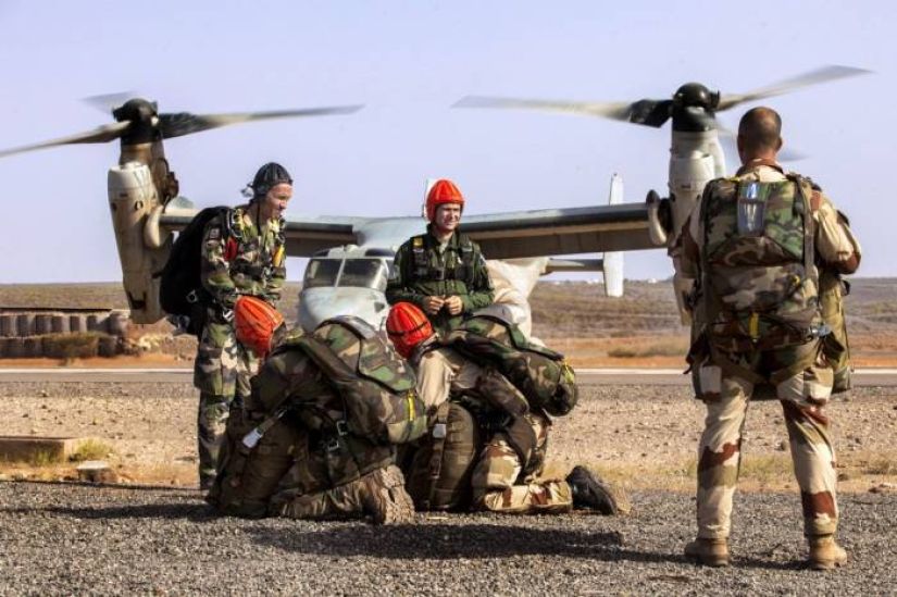 Американские морпехи 26-го MEU и французские спецназовцы во время совместного десантирования в Джибути