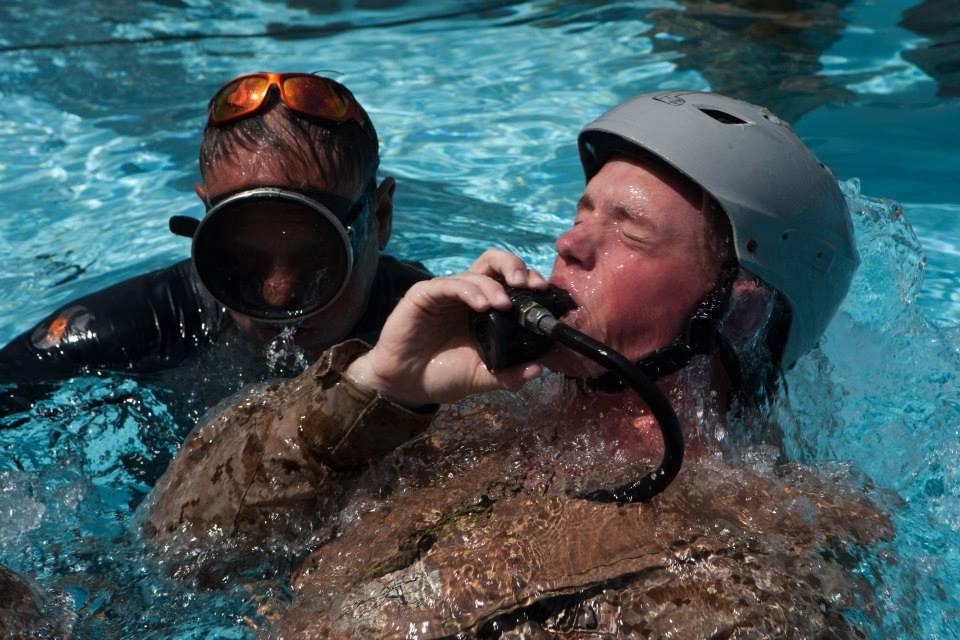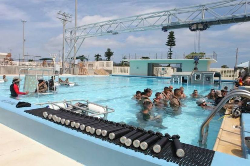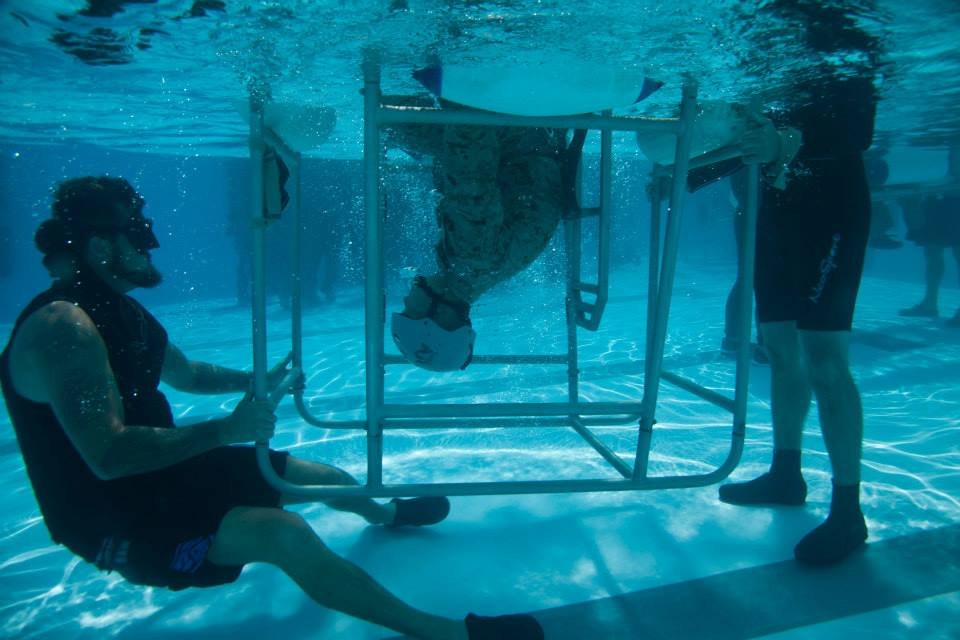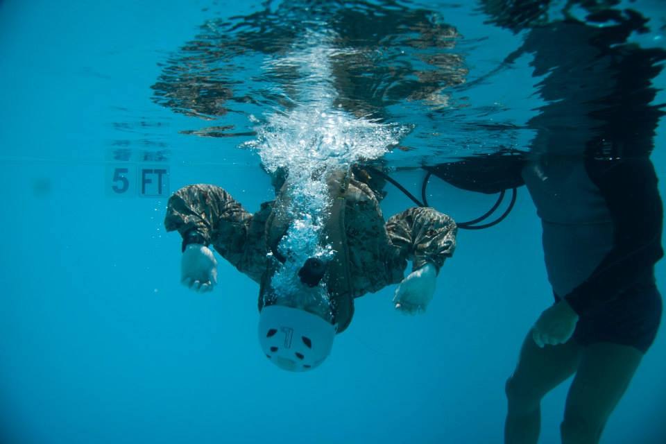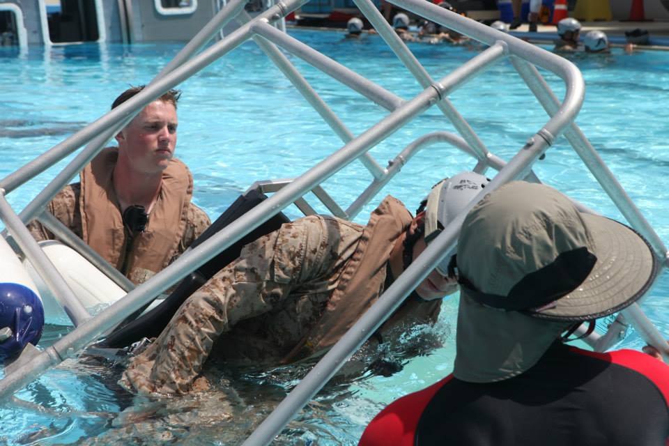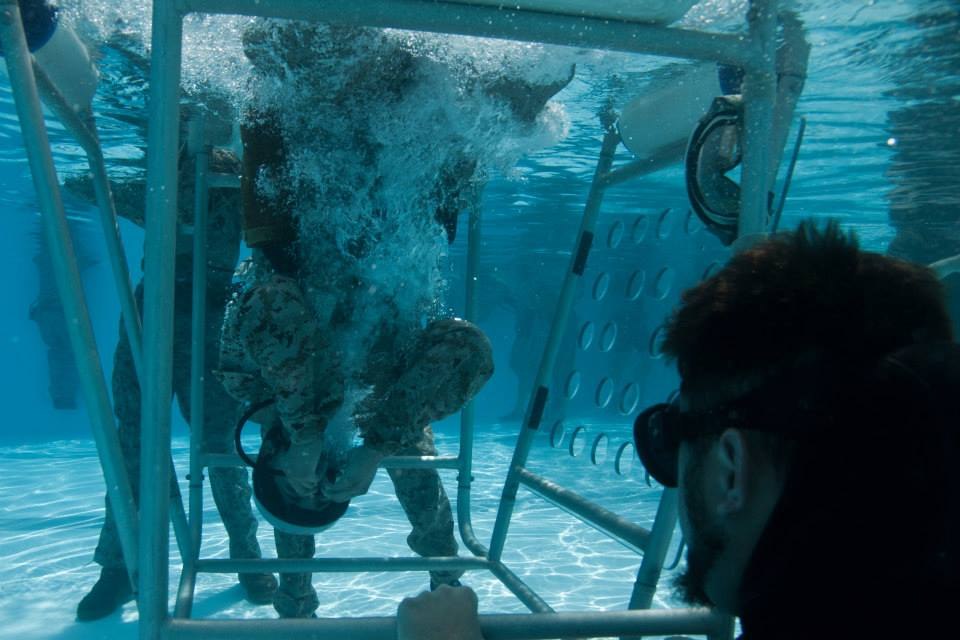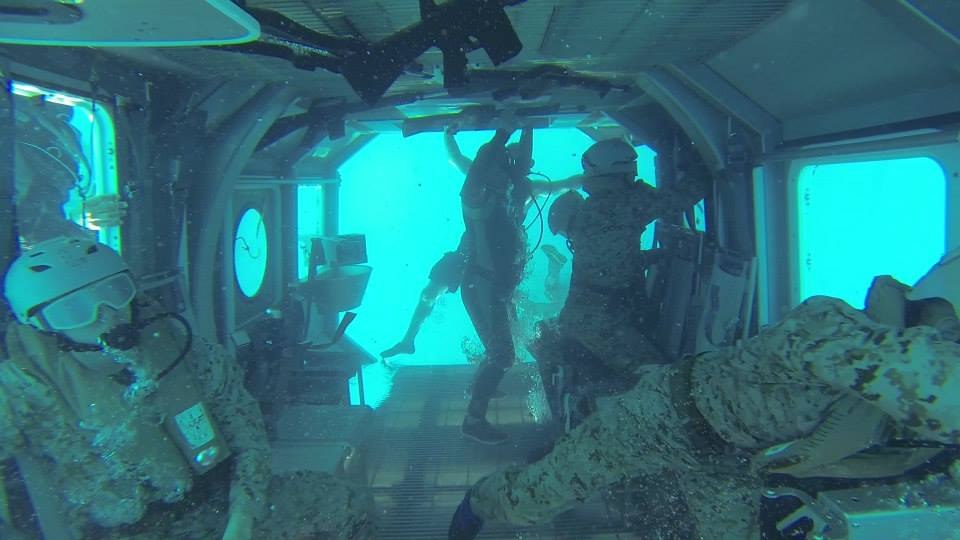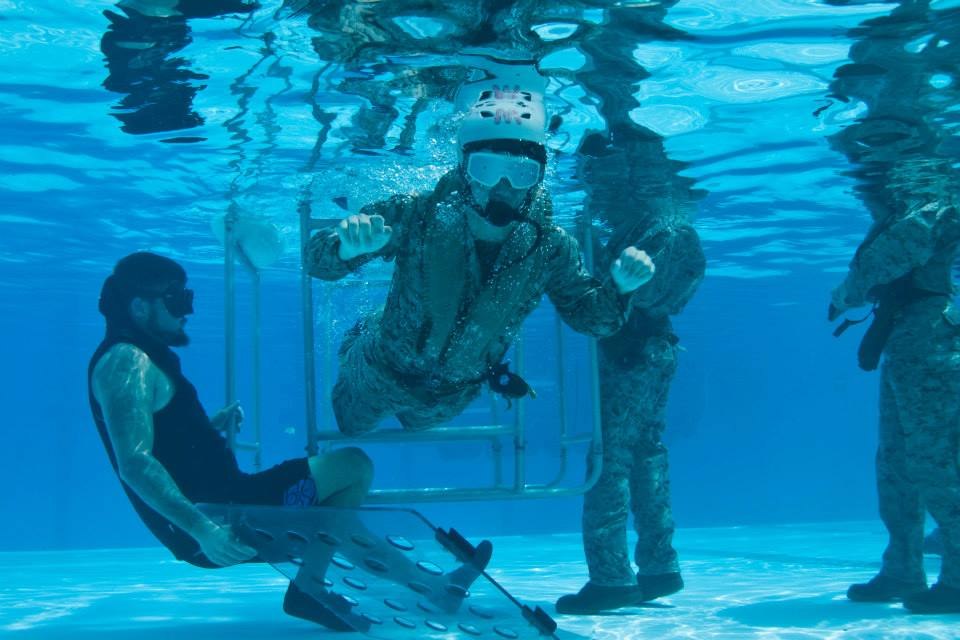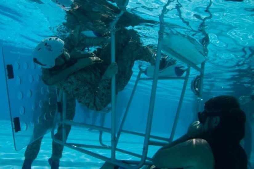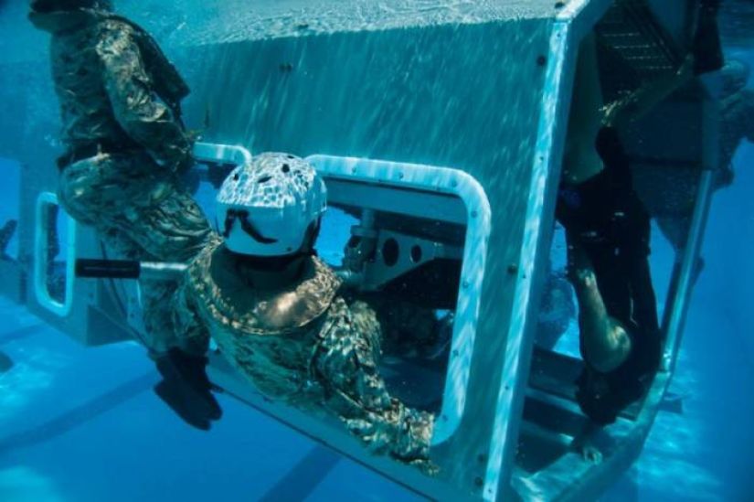 Морпехи КМП США на упражнении "Эвакуация из упавшего в воду вертолета"