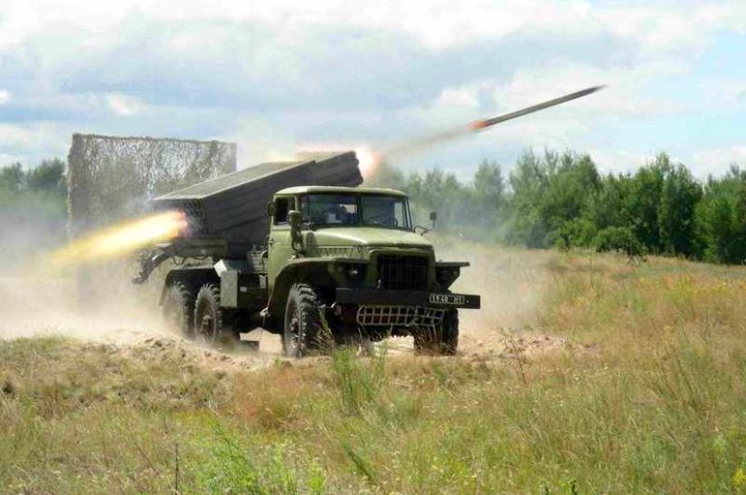 2. БМ-21 Град - реактивная система залпового огня (РСЗО) калибра 122 мм. Предназначена для поражения открытой и укрытой живой силы, небронированной техники и бронетранспортеров в районе сосредоточения, артиллерийских и минометных батарей, командных пунктов и других целей, решения других задач в различных условиях боевой обстановки. Система может выпустить 40 неуправляемых ракет менее чем за 20 секунд.
