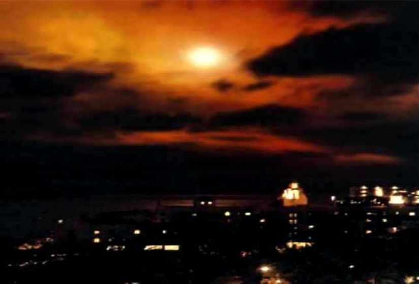 Практически полное отсутствие воздуха на высоте 400 км воспрепятствовало образованию привычного ядерного гриба. Однако при высотном ядерном взрыве наблюдались другие интересные эффекты. На Гавайях на расстоянии 1500 километров от эпицентра взрыва под воздействием электромагнитного импульса три сотни уличных фонарей (не все, на фото видно уличное освещение), телевизоры, радиоприемники и другая электроника вышли из строя. В небе в этом регионе более семи минут можно было наблюдать зарево. Его наблюдали и засняли на пленку с островов Самоа, расположенных в 3200 километрах от эпицентра.