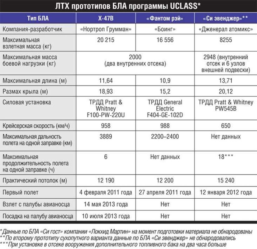 В итоге заказчику придется делать выбор не только между идейно схожими проектами БЛА от разных производителей, но и между двумя противоположными подходами к созданию БЛА, предназначенного для базирования на американских авианосцах. Хотя в июле 2013 года в интервью журналу «Флайт» контр-адмирал Матиас Уинтер, с июля 2012-го исполняющий обязанности руководителя программ разработки беспилотных авиационных и ударных систем вооружений командования авиационных систем ВМС США, подчеркивал, что поскольку одно из требований к перспективному палубному БЛА – обеспечение максимально возможной малозаметности, у разработчика просто не остается ничего иного, как использовать в беспилотнике схему «летающее крыло».