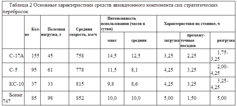 Сравнение возможностей авиационной и морской составляющих системы стратегических перебросок (ССП) ВС США. Основными составляющими, характеризующими эффективность применения компонентов ССП, являются: