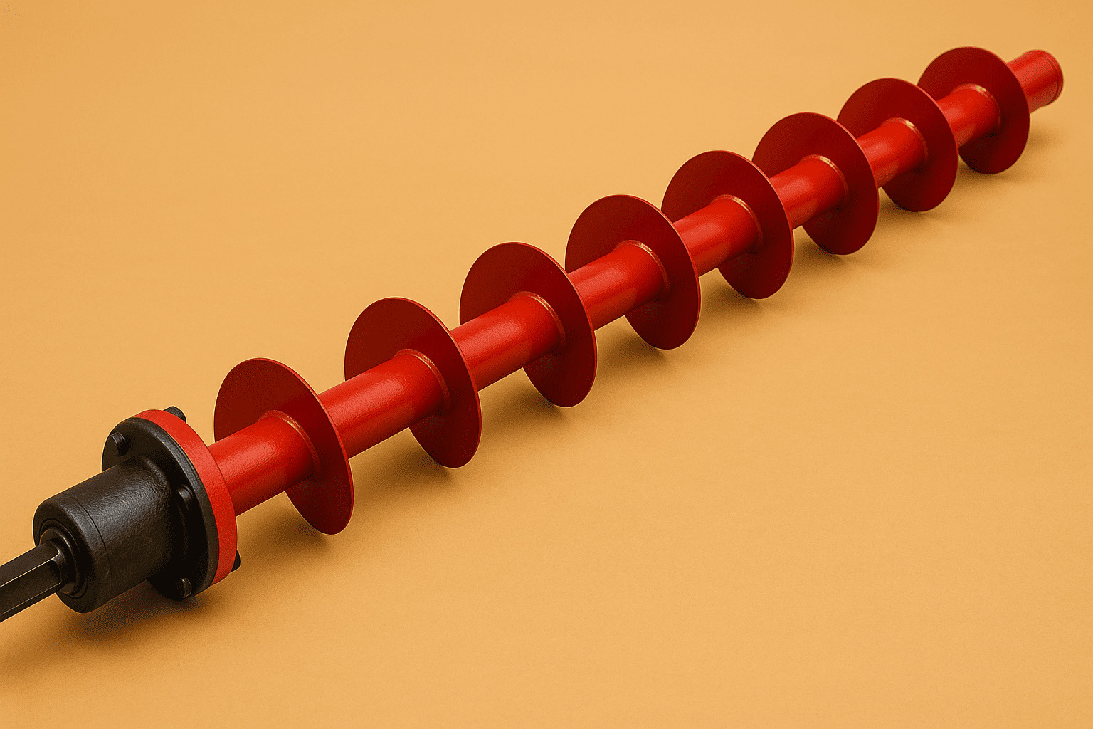 - Винтовые лопасти — сплошные, ленточные или усиленные, в зависимости от типа материала.