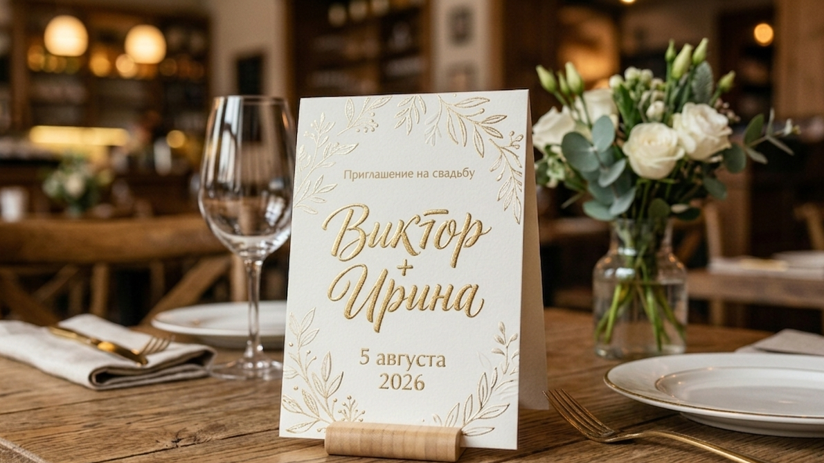 Обычно достаточно одного главного акцента и одной поддерживающей детали. На лицевой стороне это может быть имя, дата, название события, монограмма или короткая фраза. Такой подход делает приглашение выразительным и не превращает его в набор бликов.