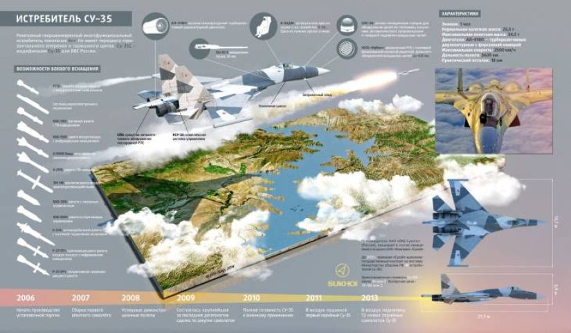 По словам министра обороны Сергея Шойгу, в начале года российские ВВС получили первые 12 Су-35С. До конца года будет поставлено еще столько же. Всего ВВС получат 48 новейших истребителей. С появлением этих самолетов российские ВВС ни в чем не будут уступать авиации США и НАТО: шведским истребителям JAS 39 Gripen, американским F-16 Fighting Falcon Block 60, F-15 Silent Eagle и F/A-18 Super Hornet, а также французским Rafale и европейским Eurofighter 2000. По мнению специалистов, Су-35 превосходит «Миражи», «Грипены», «Тайфуны», «Рафали» и F/A-18E/F «Супер Хорнеты».