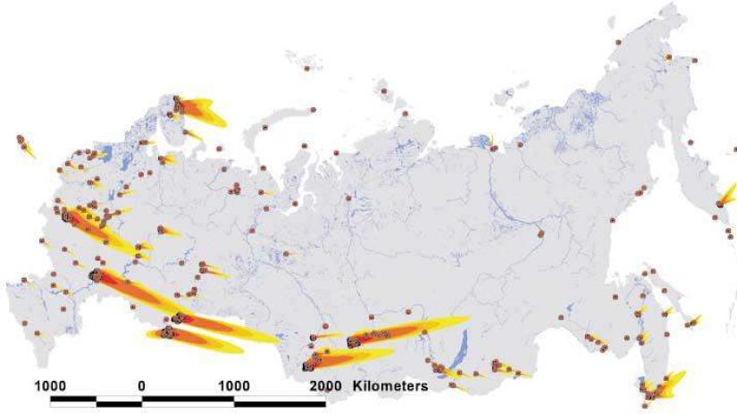 Как видно, серый цвет, это чистые места, не пораженные радиацией и этого серого цвета довольно много. «В зависимости от времени года, наша статистическая оценка показывает, что МАО-NF (Major Attack Option-Nuclear Forces) (вариант крупного нападения ядерных сил) атака США с использованием 1289 боеголовок повлечёт за собой 11 — 17 миллионов жертв среди мирного населения, в том числе 8 — 12 миллионов погибших…» Так как население России составляет 146.270.033 человек, то после первого ядерного удара, по расчетам нашего врага, должно остаться где-то 130.000.000 человек.