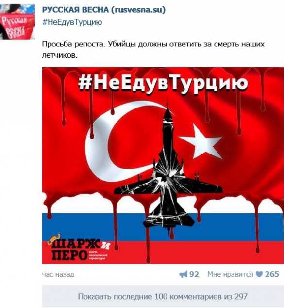 Во вторник российский боевой самолет Су-24 потерпел крушение в Сирии. Президент РФ Владимир Путин сообщил, что самолет был сбит ракетой типа "воздух-воздух" с турецкого F-16 над сирийской территорией и упал в Сирии в четырех километрах от границы с Турцией. Российский президент назвал это "ударом в спину" со стороны пособников террористов.