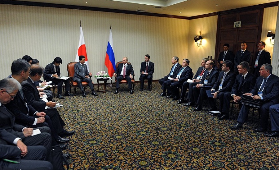 Во вторник в столице Перу Лиме на полях саммита АТЭС Владимир Путин вновь провел переговоры с Синдзо Абэ, по итогам которых он сообщил, что Россия и Япония ищут пути для заключения мирного договора, и ключом к нему является повышение доверия через расширение сотрудничества. По словам президента России, японский премьер предложил программу активизации деловых и экономических связей двух стран из восьми пунктов, которые, в том числе, касаются совместной деятельности на спорных островах.