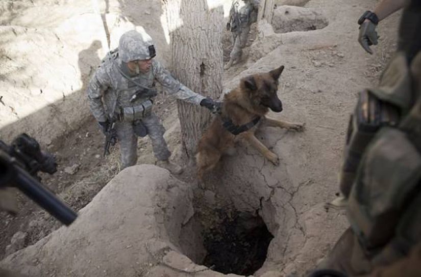Собака ВВС США по кличке Баско не хочет идти внутрь туннеля для поиска взрывчатых веществ в заброшенном доме, в то время как сержант Мэтью пытается заставить ее это сделать.