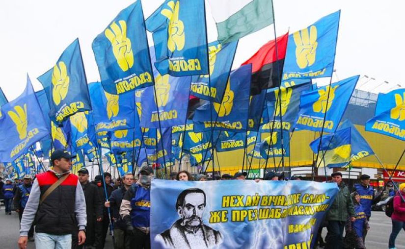 Наглядным примером такого вот патриотизма является националистическая партия «Свобода». Российский читатель и телезритель знает о ней, как о нацисткой банде, постоянно участвующей в разного рода нелепейших акциях. Свободовцы регулярно заявляются на заседания всевозможных облсоветов, горсоветов с целью сорвать какое-нибудь голосование или просто пошуметь. Кроме того, они регулярно протестуют против украинских артистов, выступающих в России, против членства в Верховной Раде отдельных нардепов, считающихся пророссийскими только потому, что они состоят в рядах Оппозиционного блока.