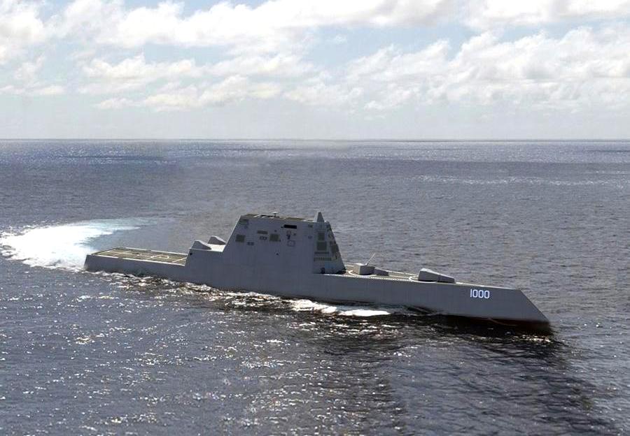Новейший многоцелевой эсминец класса Zumwalt (названного так в честь руководителя военно-морскими операциями адмирала Элмо Р. Зумвальта) предназначен для атак на наземной поверхности, борьбы с авиацией и огневой поддержки с моря. Он станет на 30 м длиннее нынешних эсминцев и почти вдвое тяжелее, при этом будет обладать площадью радиолокационной заметности в 50 раз меньше, а управлять им будет вдвое меньший экипаж.